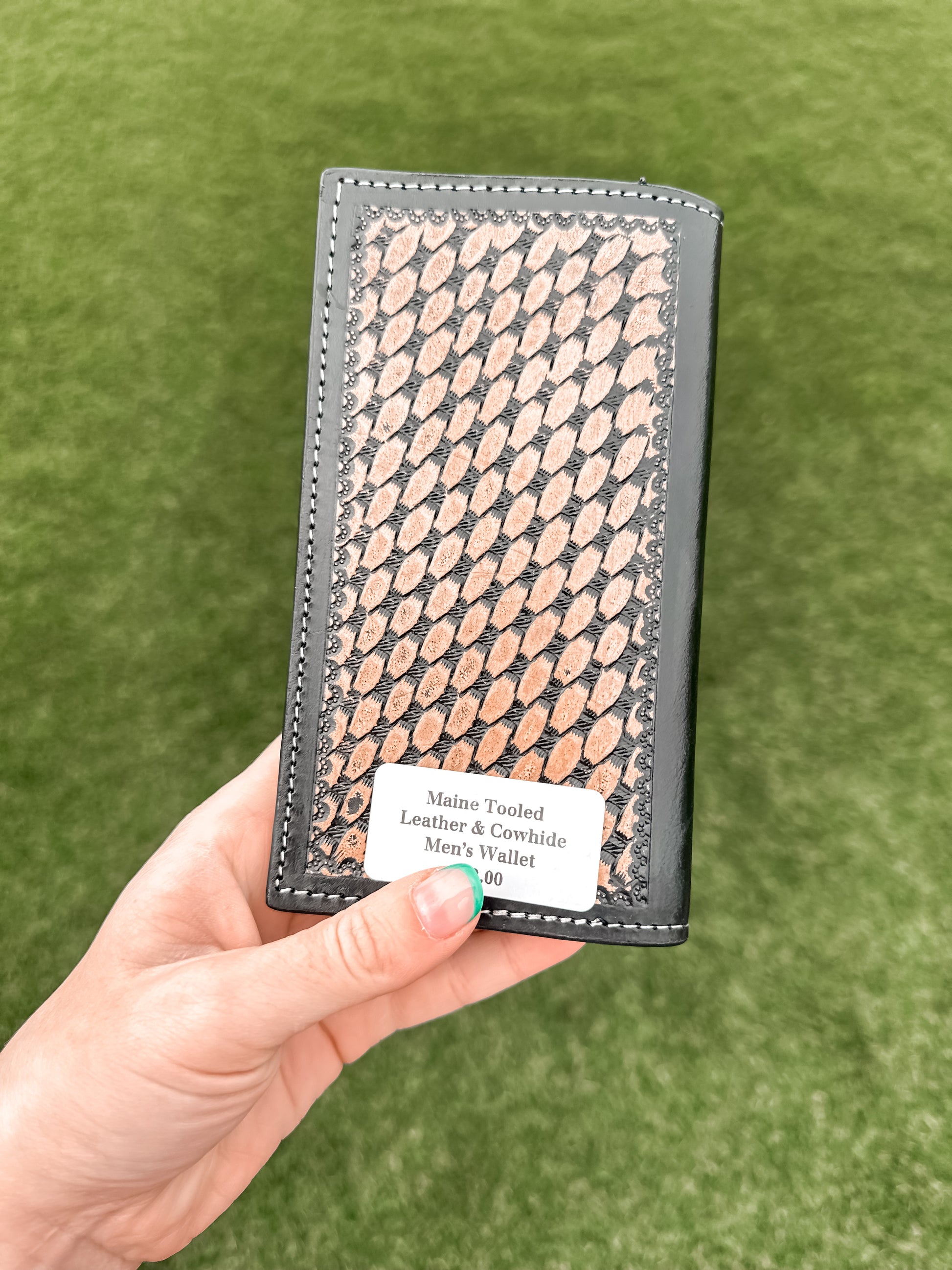 Maine Tooled Leather & Cowhide Men’s Wallet
